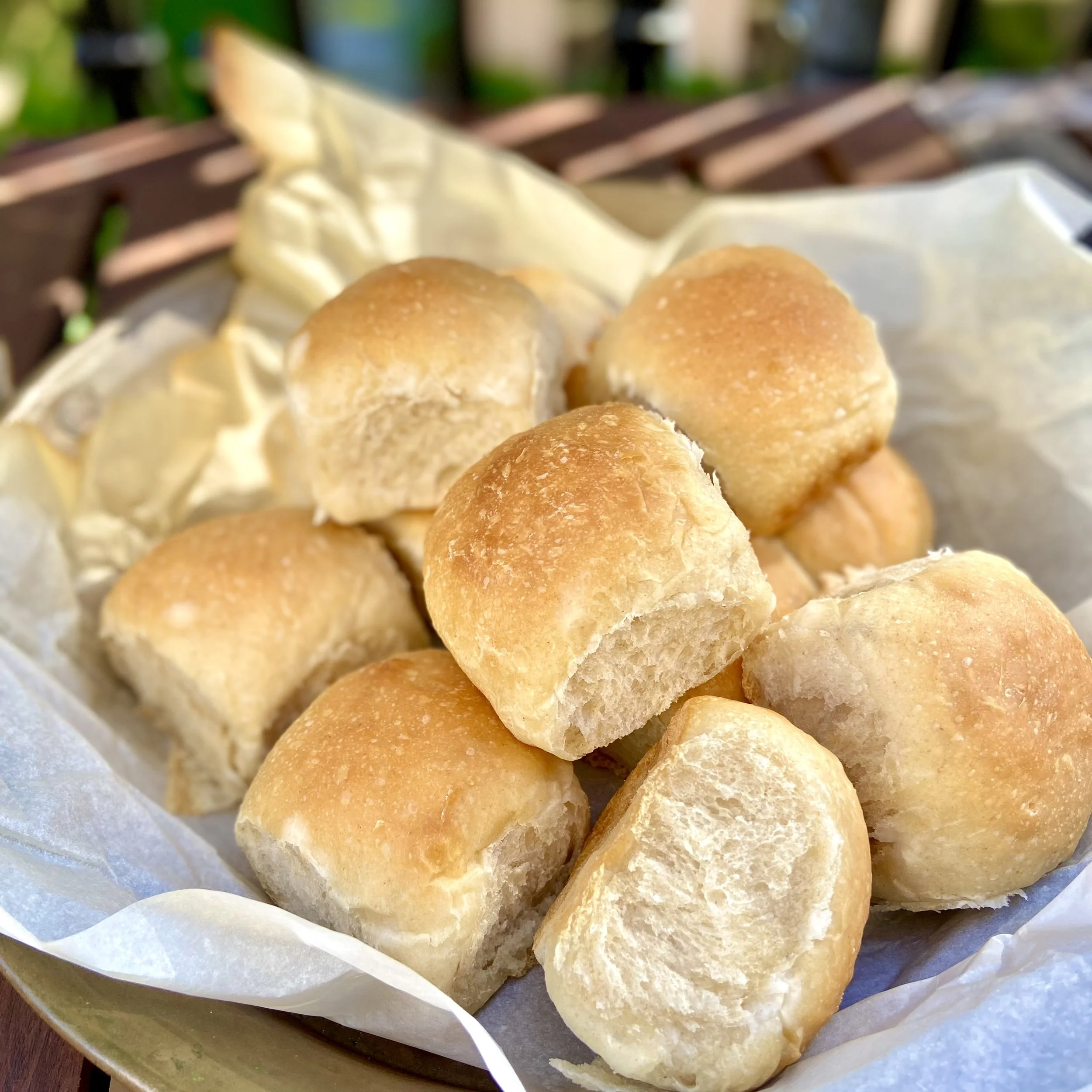 A pillowy soft, buttery roll with a light golden crust, tender crumb, and a delicate tang from natural sourdough fermentation. Perfect for savoring on their own or alongside your favorite dishes.